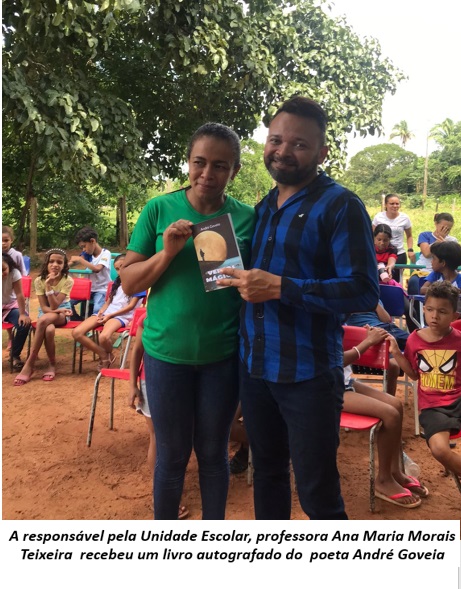 Responsável pela Unidade Escolar, a professora Ana Maria Morais Teixeira externou sua satisfação com a visita do poeta André Goveia. “Foi uma Roda de Conversa Poética de forma magnífica no sentido que, a educação é o caminho da equidade e vimos da mais bela forma poetizando, com esse querido escritor que conseguiu a proeza de despertar inspirações não somente no corpo discente, mas também, no corpo docente de nossa escola”, destacou a professora, que fez questão de agradecer a presença ilustre desse poeta tocantinense no seio escolar.